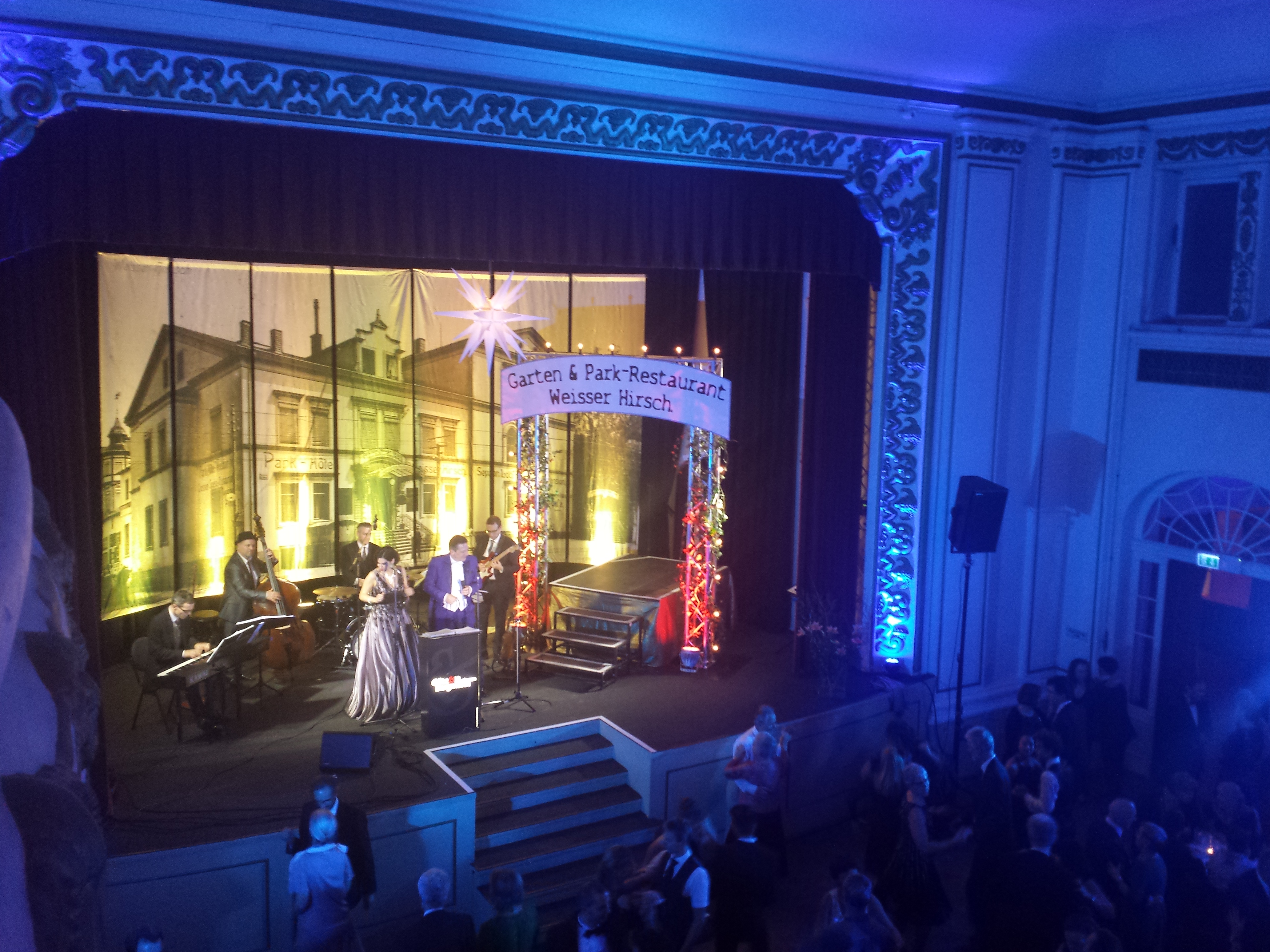 Der Verschönerungsverein Weißer Hirsch / Oberlosch-witz e.V. lädt jährlich zum Dreikönigsfest im Ballsaal und Wintergarten. Mit vielen Bekannten und berühmten Persönlichkeiten begeistert die Veran-staltung mit Sängern, Schauspielern, Tänzern, Musikern und Anwohnern des Weißen Hirschs. Ein wunderschönes Vorprogramm im Wintergarten von Bewohnern gestaltet, ein Bühnenprogramm mit Inge-borg Schöpf, Camilla Nylund, Regina Felber, Anton Saris, Norbert Munser, den Tänzern Juliane Hartmann und Karsten Meier sowie einer Tanzgruppe des Kinder- und Jugendtanzstudios der TU Dresden und der anschließen-de Tanz zur Musik von Götz Bergmann and his Gentlemen waren die Zuta-ten für einen Ball, der in dieser Art wohl seinesgleichen sucht. Wir unter-stützen die Veranstaltung jedes Jahr mit Mobiliar, der technischen Aus-stattung bezüglich Licht und Ton und der gastronomischen Betreuung.
